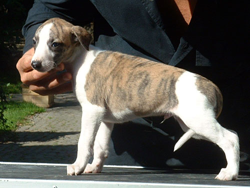 Der inzwischen stattliche Jungrüde der Fam. Klesius hat schon bei seiner ersten Ausstellung (für ihn und seine Besitzer!) für eine Überraschung gesorgt: Unter starken Mitbewerbern konnte er in Bad Homburg unter dem Whippet-Spezialisten Magnus Hagsted aus Schweden dermaßen überzeugen, dass er nicht nur das V1 erhielt, sondern auch noch Jugend-BOB wurde! Herzlichen Glückwunsch von den überraschten Züchtern an die überraschten Besitzer!